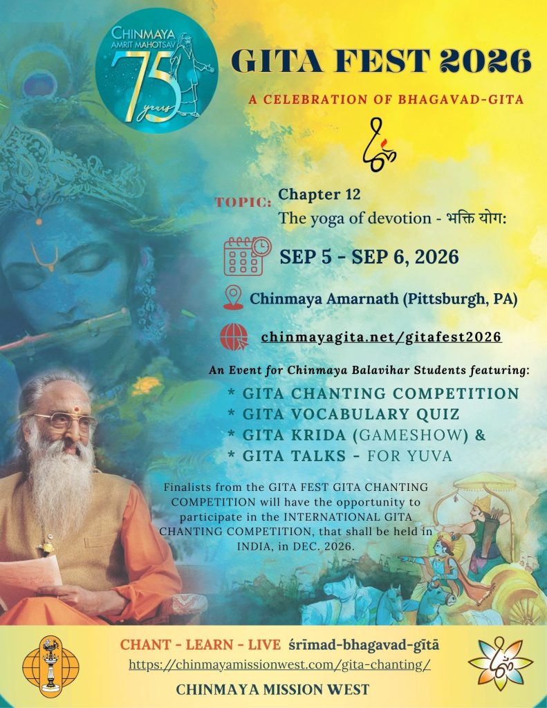 Hari 🕉️! *Gita Chanting 2026**This is no ordinary year! As Chinmaya Mission turns 75, our annual Gita Chanting Competition is going Global! 🌏* 📖 *The Challenge*: Chapter 12 (Bhakti Yoga) 🗓️ Save the Date: *February Read more…
