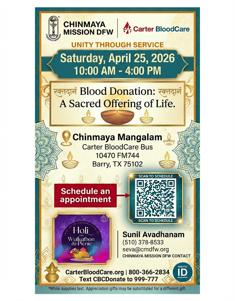 *Walkathon/picnic will be held on April 25th at Chinmaya Mangalam.*