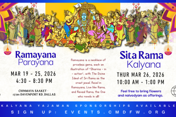 Hariḥ OM! As a follow-up to our New Year communication, we invite you to join us at the week-long Gita Saptaah – Sampoorna Gita Jnana Yagna by Swami Shantananda-ji of CM-Vrindavan, NJ. This is our first Amrit Mahotsav (CM-75th) Read more…